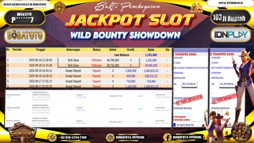BOBATOTO – Selamat kepada User id :P******7 Telah berhasil mendapatkan kemenangan besar pada permainan SLOT MAHJONG WINS-2 Dengan kemenangan Sebesar Rp.103,000,000-. Setelah mengisi formulir withdraw dengan kurung waktu hanya 5 – 10 menit pihak bobatoto sudah melakukan transfer kepada pemilik Userid dan dana sudah dapat di cairkan oleh pemenang. Bukti pembayaran yang kami berikan merupakan bukti pembayaran yang SAH / VALID yang langung di dapatkan melaui tanda transfer transaksi dari Bank yang di tuju.